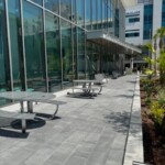 Scope of work: At the entrance of the facility and in some specialty pedestrian areas for the patients we installed custom plank pavers from Wausau Tile. Then all around the building we installed Truncated Dome Pavers.